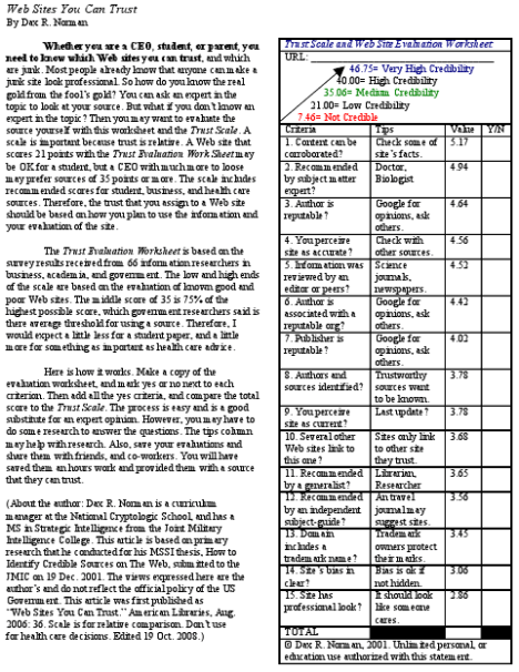 Do you have any best practices to share? Paul was thinking about creating a evaluating grid like Dax Norman developed to assess the credibility of web sites.